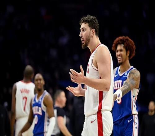 本场比赛中,火箭的先发中锋阿尔佩伦-申京(Alperen Sengun)的表现实在是很不理想。申京全场出场37分33秒,投篮15中5,三分线外2中1,罚球7中2,得到了13分8篮板7助攻2抢断2盖帽的准三双数据,还有1次失误和2次犯规,正负值-18。申京在进攻端的效率实在是惨不忍睹,他在对手内线完全不能够起到基本的支持,他的得分能力完全没有发挥出来,甚至他的罚球命中率也是令人非常失望的。申京在防守端的表现也是很不理想的水平,可以说是被乔尔-恩比德(Joel Embiid)各种打爆。申京的状态很不理想,但是到了比赛最后一节,他还是被球队留在了场上,这就显得令人非常无语了。如果申京和小贾巴里-史密斯(Jabari Smith Jr.)这两个表现一塌糊涂的球员没有留在场上,火箭可能就已经取得胜利了。