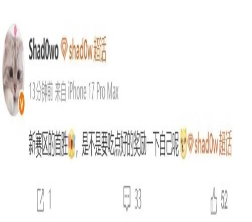 Shad0w更新动态庆祝首胜:要不要吃点好的奖励自己