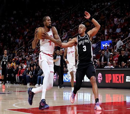本场比赛中,火箭的先发锋线球星凯文-杜兰特(Kevin Durant)的表现只能算是中规中矩,而且他在比赛关键时刻也没有起到应该起到的作用。杜兰特全场出场36分10秒,投篮17中8,三分线外4中2,罚球6中6,得到了24分2篮板6助攻1盖帽的数据,还有3次失误和2次犯规,正负值为-9。杜兰特在上下半场的表现存在着巨大的差异,他在上半场表现不错,拿下了13分。即使是在第三节,他其实也是起到了一定的作用的,并且通过各种方式拿下了7分。然而到了比赛第四节,在全队进攻哑火的情况下,杜兰特完全没有展现出自己的硬解能力,他仅以4中1的效率得到了4分,完全没有承担起应该承担的责任。不仅如此,杜兰特在其他方面的表现也是令人失望的,也同样没有起到作用,这也在一定程度上导致了球队的这场失利。