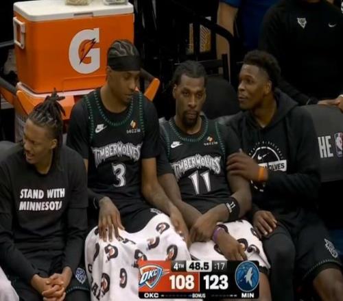 进入下半场,麦克丹尼尔斯继续扔三分+自投自抢,爱德华兹突分助攻迪文岑佐轰三分,麦克丹尼尔斯继续战斧劈扣,分差已经到19分!亚历山大和麦克丹尼尔斯对轰三分,此后双方维持在16分左右陷入拉锯战。后半段海兰德续上三分,戈贝尔暴扣,亚历山大单打杯水车薪,爱德华兹则继续扔三分。三节结束时,森林狼96-80领先。进入第四节,兰德尔和里德继续下三分雨,里德轻松补篮,分差已经到20分。雷霆大势已去,没过多久就缴械投降。最终森林狼主场爆冷123-111大胜雷霆!