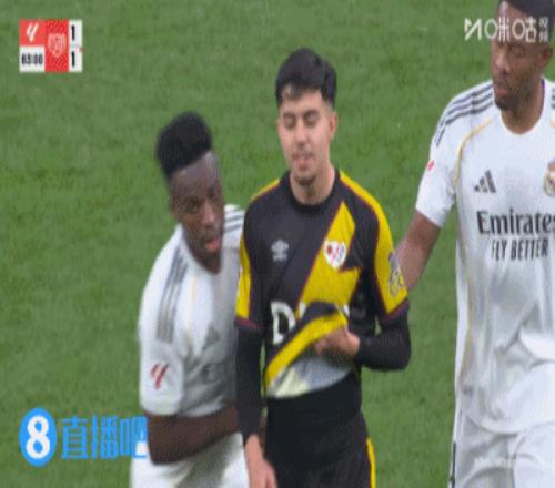体育播报02月01日宣 皇马vs巴列卡诺第83分钟,阿克霍马奇被换下场时,维尼修斯认为他走得太慢,两人发生争执,各吃一黄!